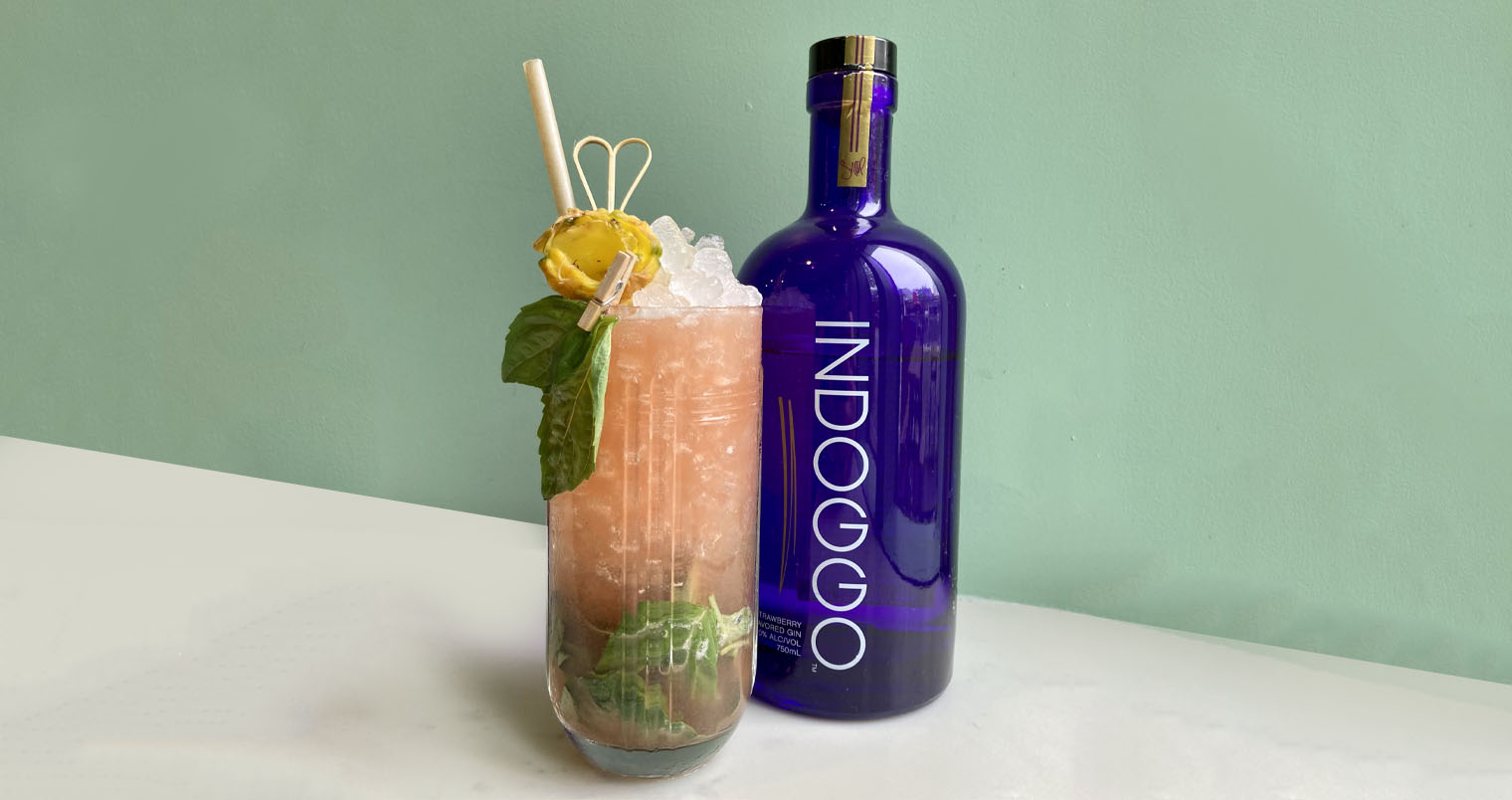 Inspiration: Need a spicy little sipper to get through the Dogg days of summer? This drink will be the perfect pairing featuring flavors of pineapple, lemon, and jalapeño. Strawberry purée acts to accentuate the fresh and fruity strawberry notes highlighted in the Indoggo Gin itself. And you know there has to be some herb involved – get green by shaking in some fresh basil. Lay back like the OG you are and enjoy a sip of this refreshingly modern take on a gin and juice.